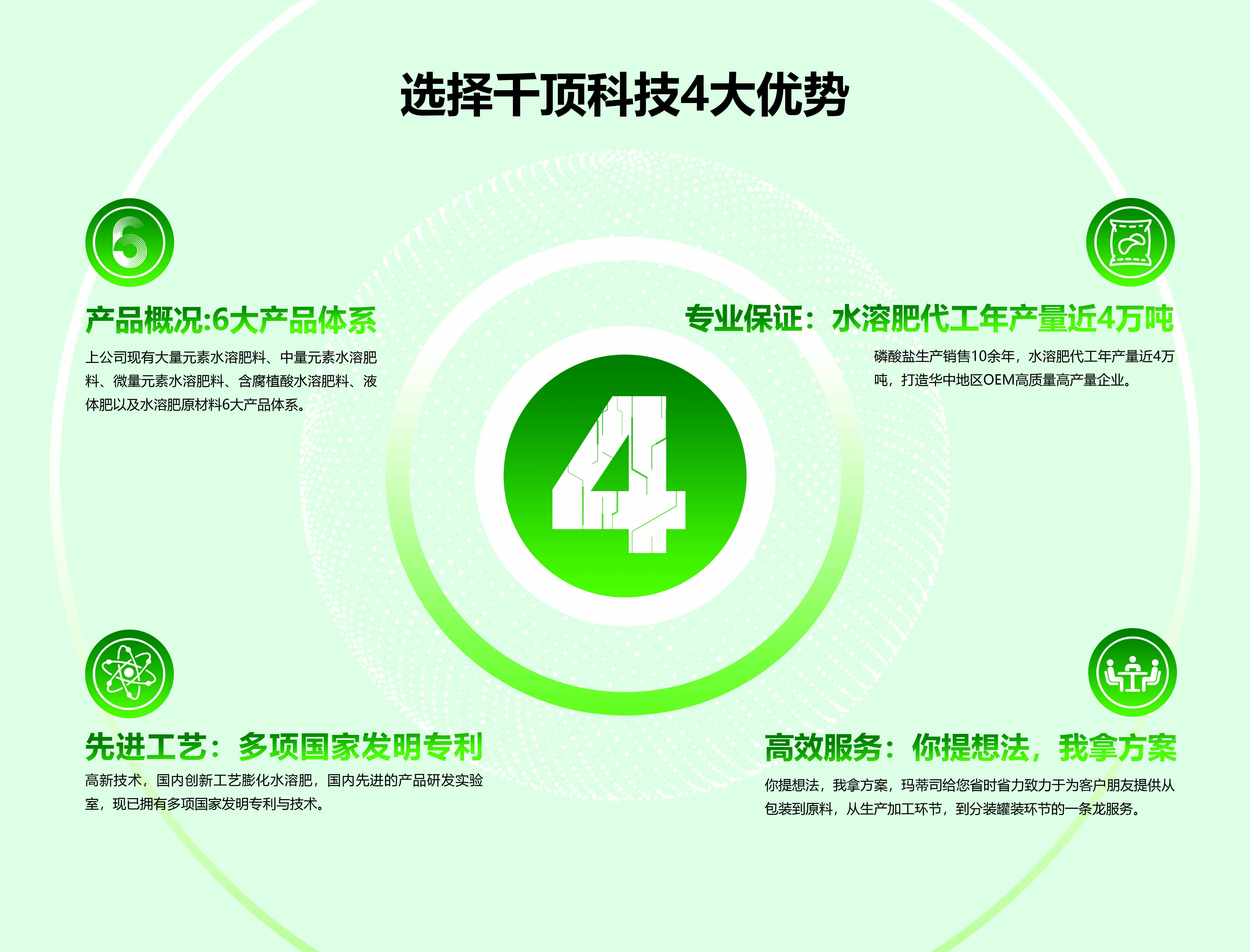 - 湖北千頂科技有限公司位于九省通衢,美麗的江城武漢,是一家專(zhuān)業(yè)從事研發(fā)、生產(chǎn)、磷酸鹽和高端水溶肥等一體化工企業(yè),是一家致力于打造農(nóng)業(yè)與工業(yè)攜手進(jìn)步的化工企業(yè)...